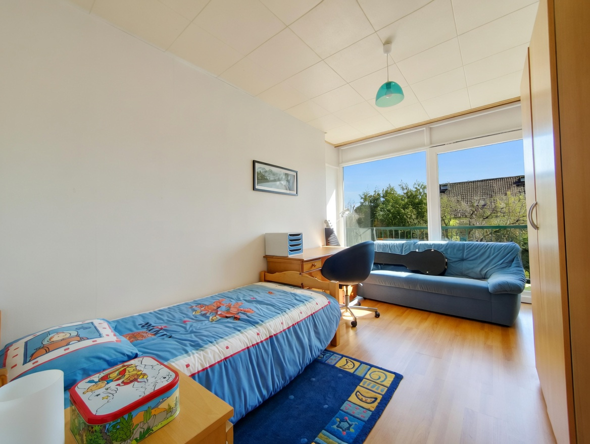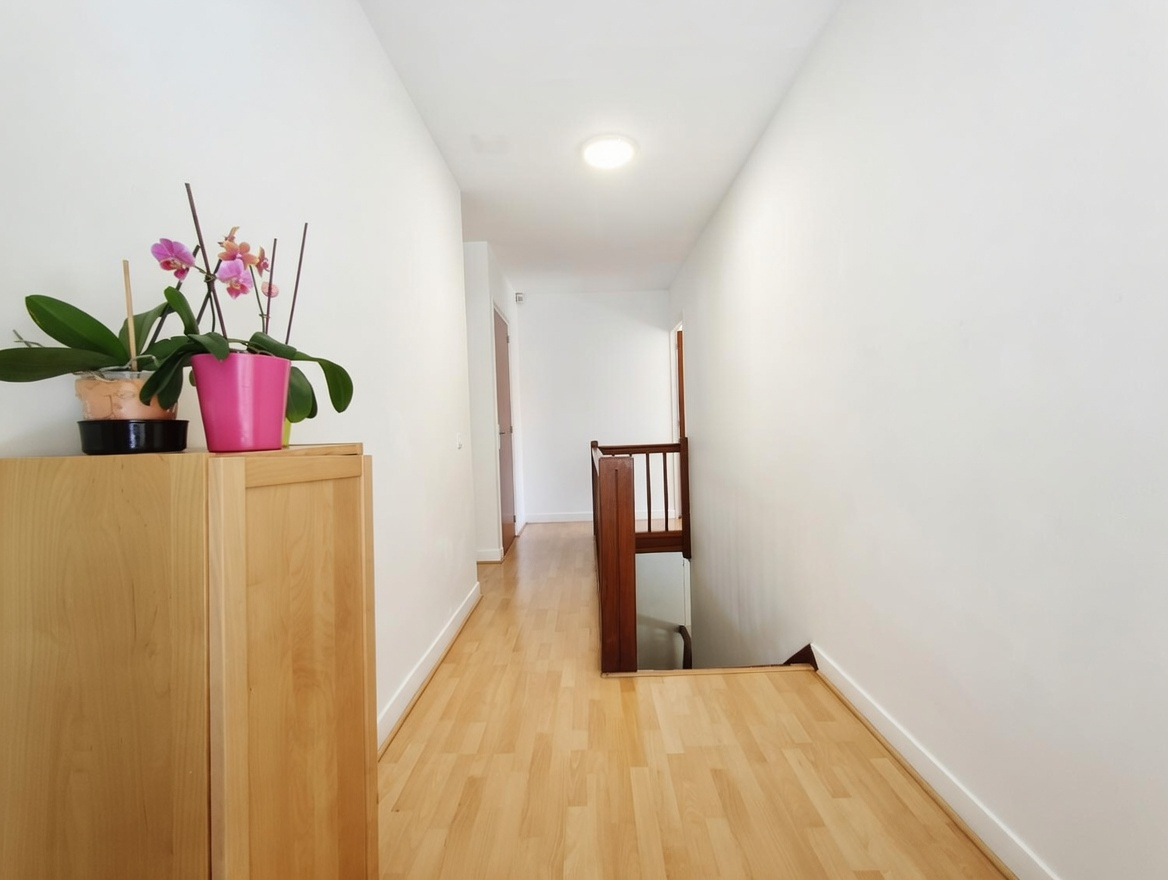 À l’étage, trois chambres dont deux avec balcon, ainsi qu’une salle de bain et des WC séparés, offrent un espace confortable pour toute la famille.